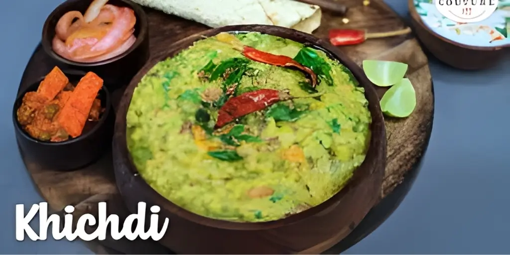 Surti Khichdi is simple yet comforting. Made with rice, lentils, and mild spices, it’s often served with kadhi, ghee, and papad.